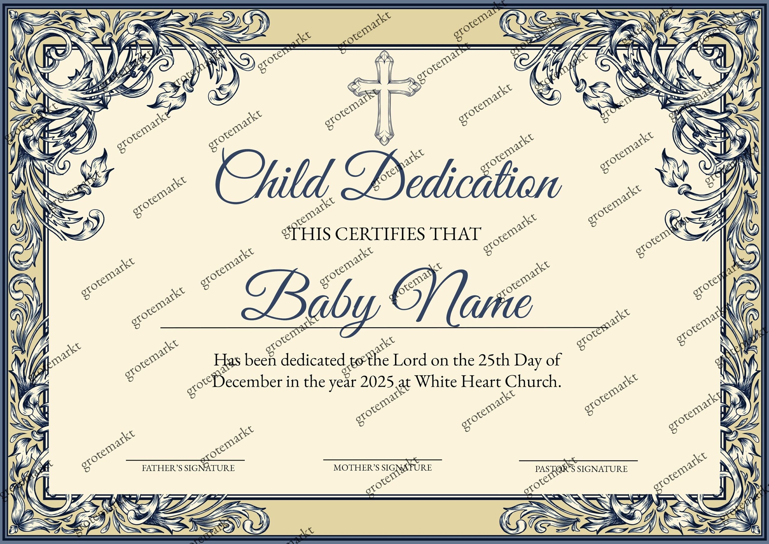 Personalized Child Dedication Certificate Template Baptism Children Christening Gold Baptism Editable Printable Church Certificate Blue