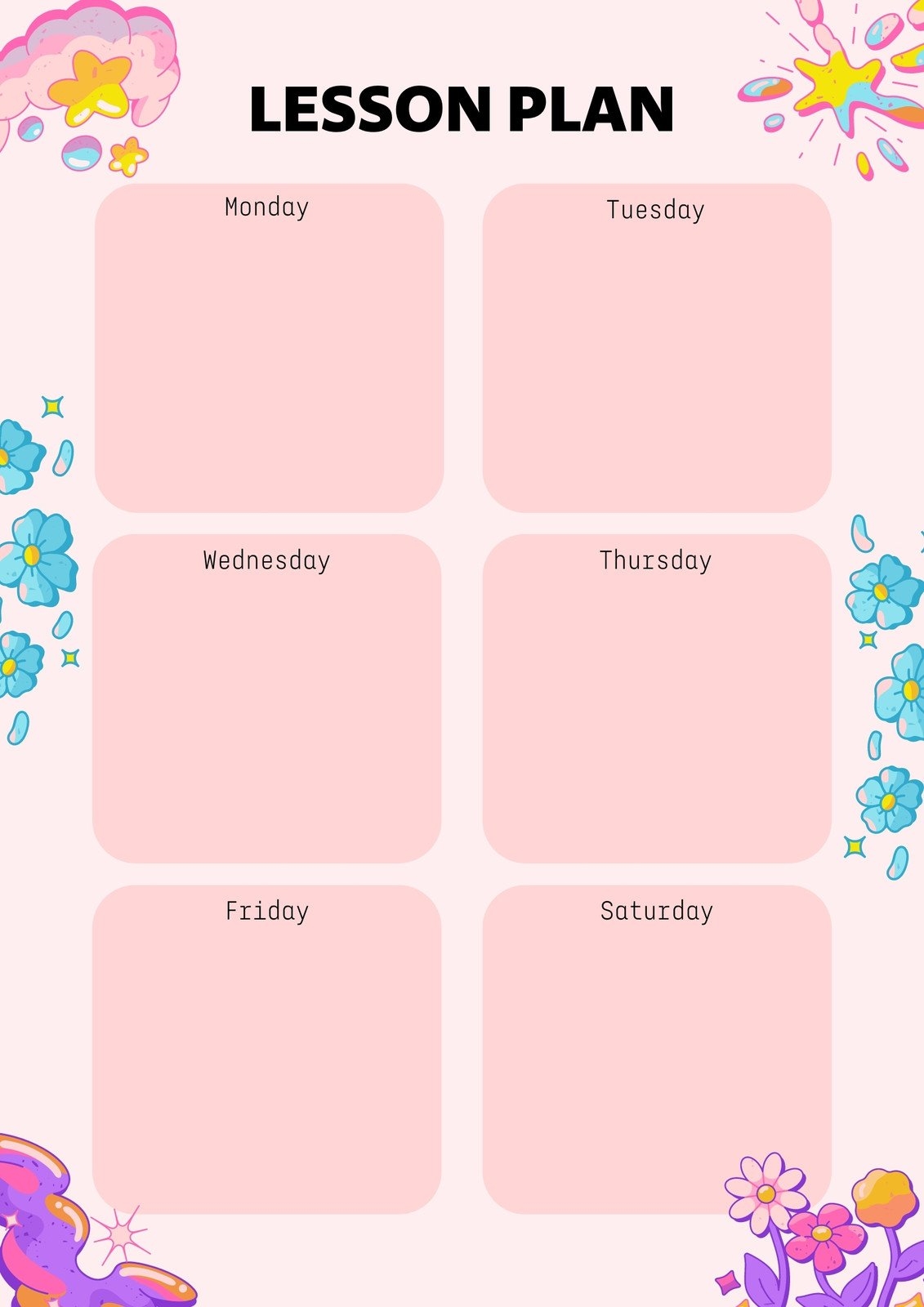 Simply download and print the blank weekly lesson planner, then fill in the sections with your lesson plans. You can add in details like time slots, subject areas, and even space for notes or reflections on how the lesson went.