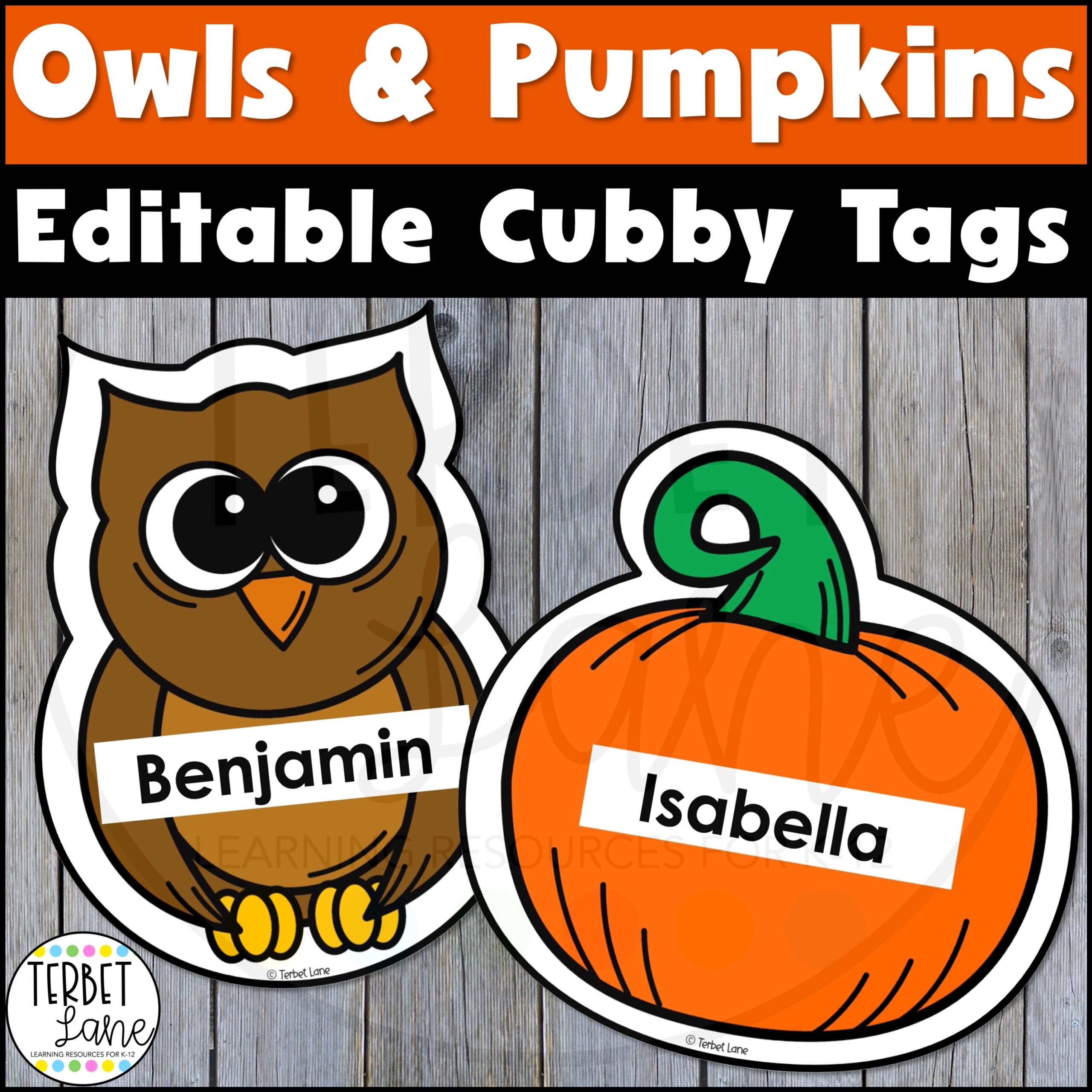 Editable Owls And Pumpkins Fall Cubby Tags Locker Labels