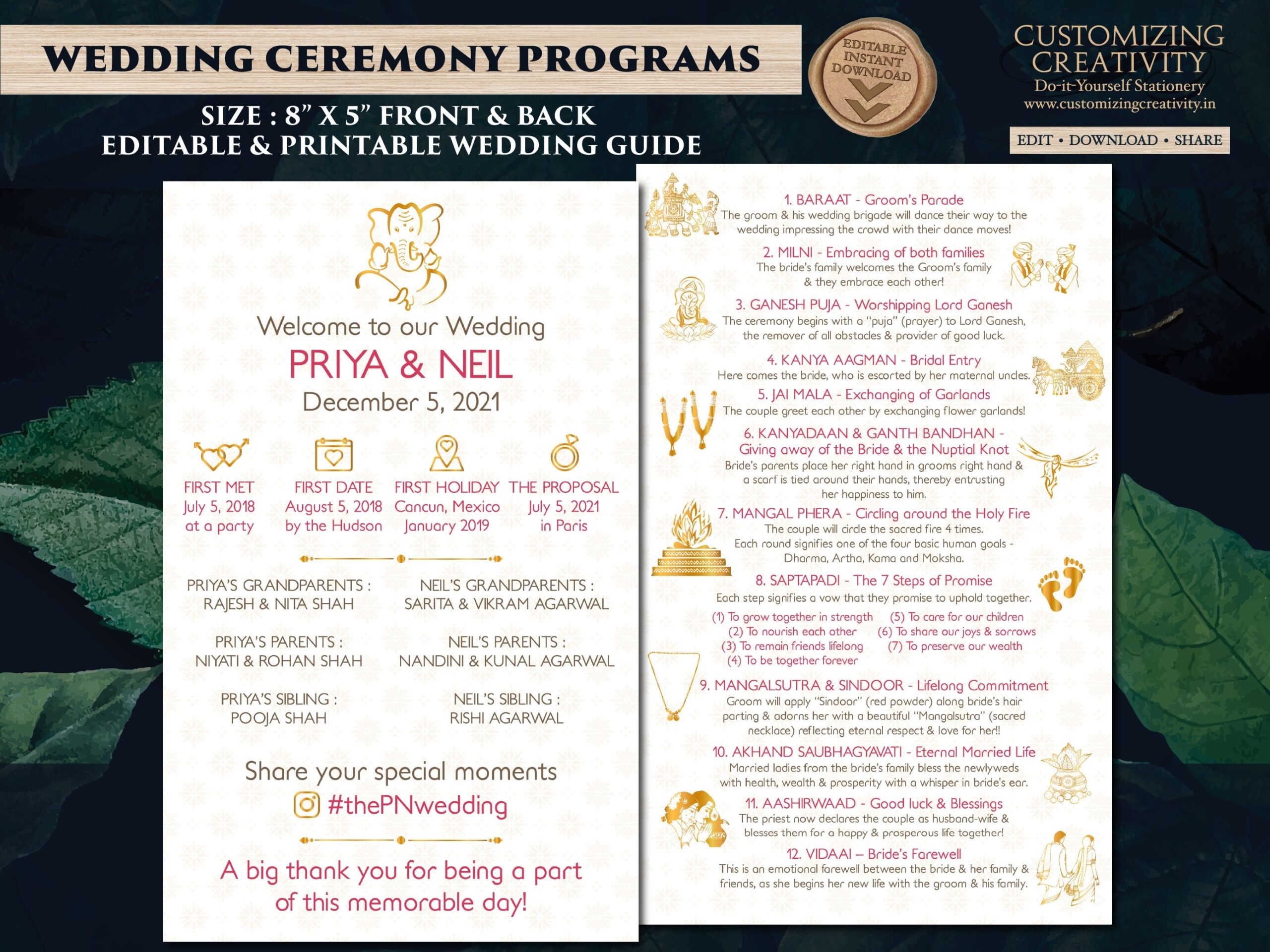 Editable Hindu Ceremony Program Template Hindu Wedding Program