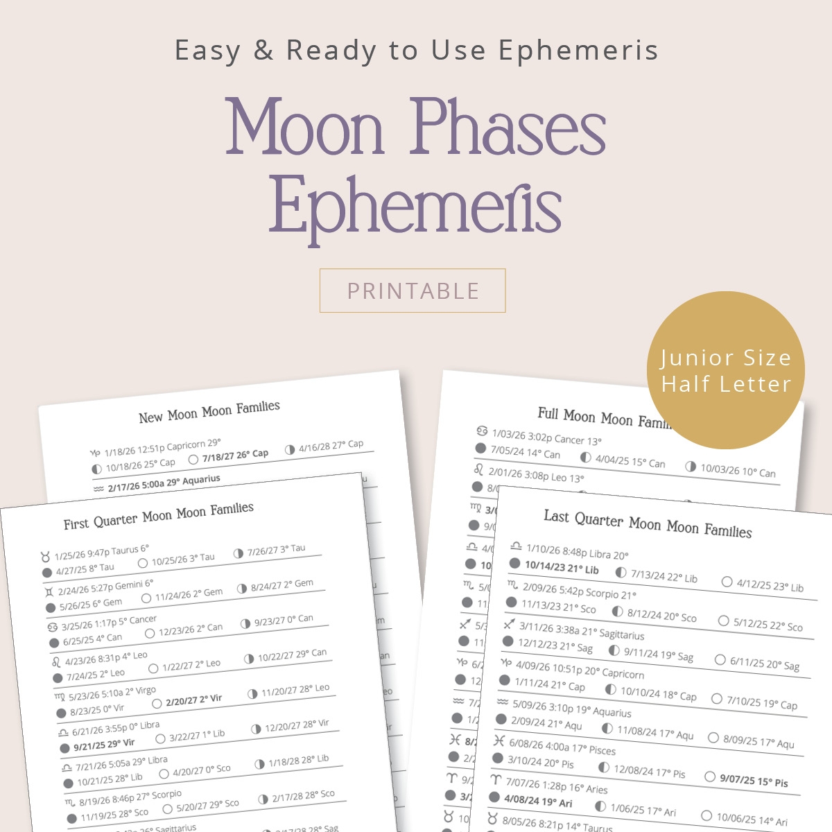 2026 Moon Phases Calendar Lunar Calendar Astrology Calendar Moon Cycle PLR Resell Rights Canva Etsy