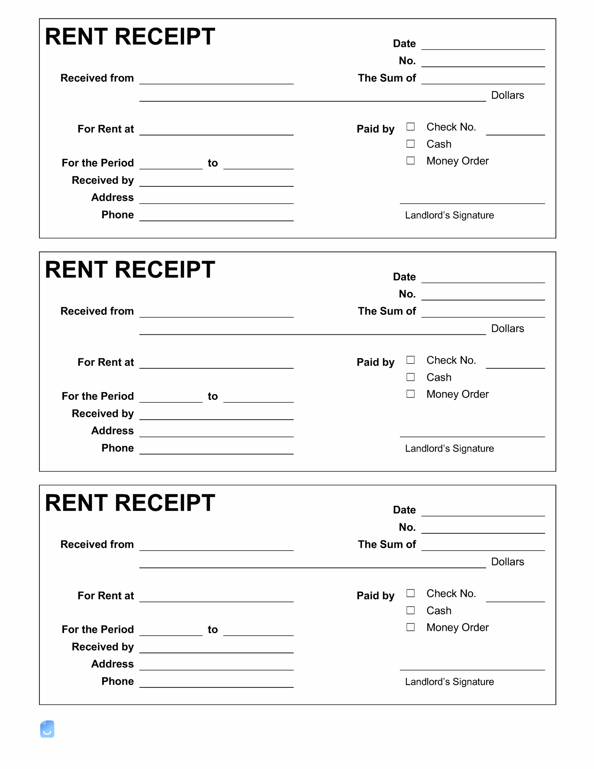 Free Receipt Book Templates Print 3 Receipts Per Page PDF Word EForms
