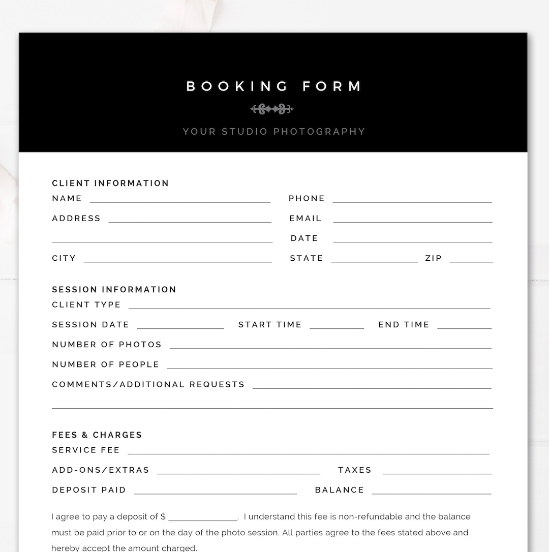 Modern Black U0026 White Booking Form Template Printable Photography Booking Form For Photoshop And MS Word INSTANT DOWNLOAD Etsy