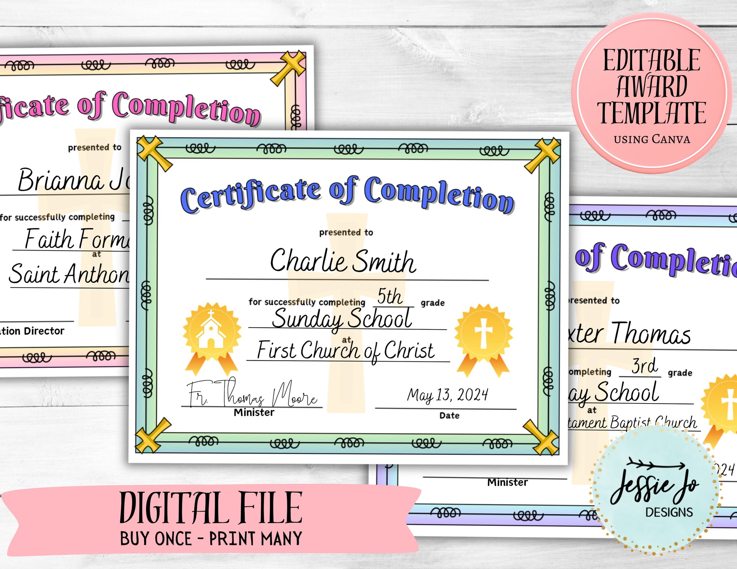 Sunday School Award Certificate Christian Certificate Editable Award Template Canva Template Etsy