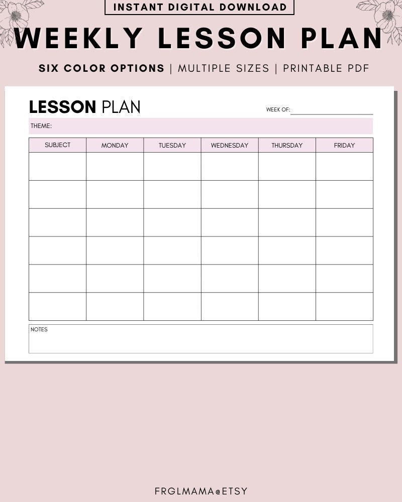 This template is designed to help you stay organized and on top of your lesson planning game. With sections for each subject, day of the week, and even a spot for notes, you’ll have everything you need at your fingertips.