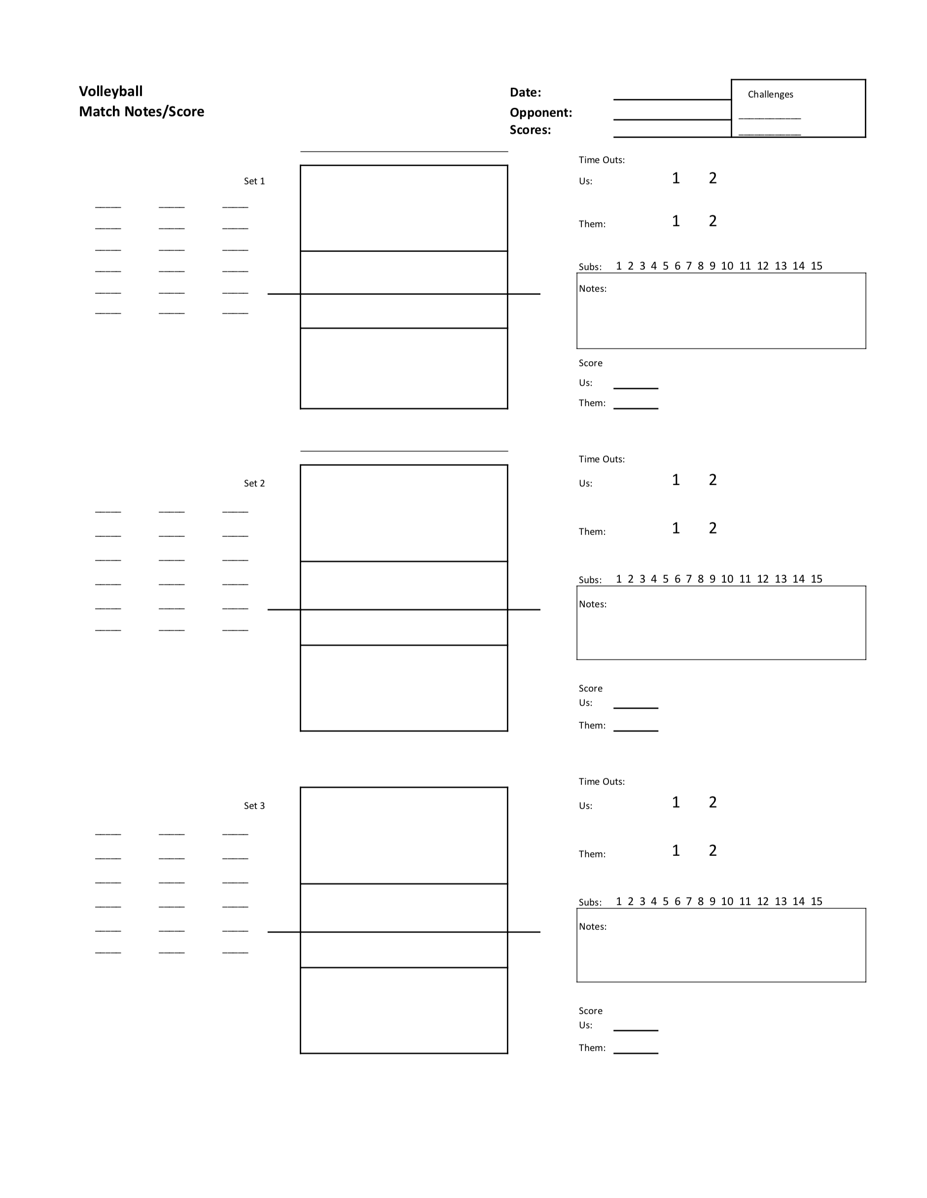 Printable Blank Volleyball Court Rotation Sheets