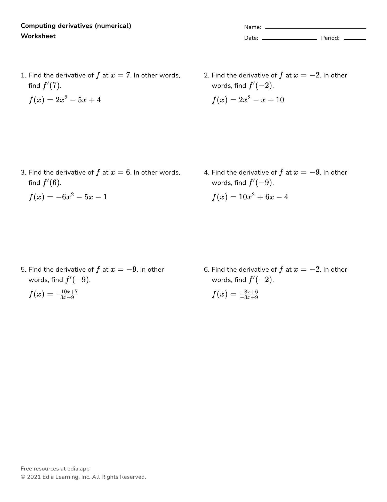 Printable Precalculus Worksheets