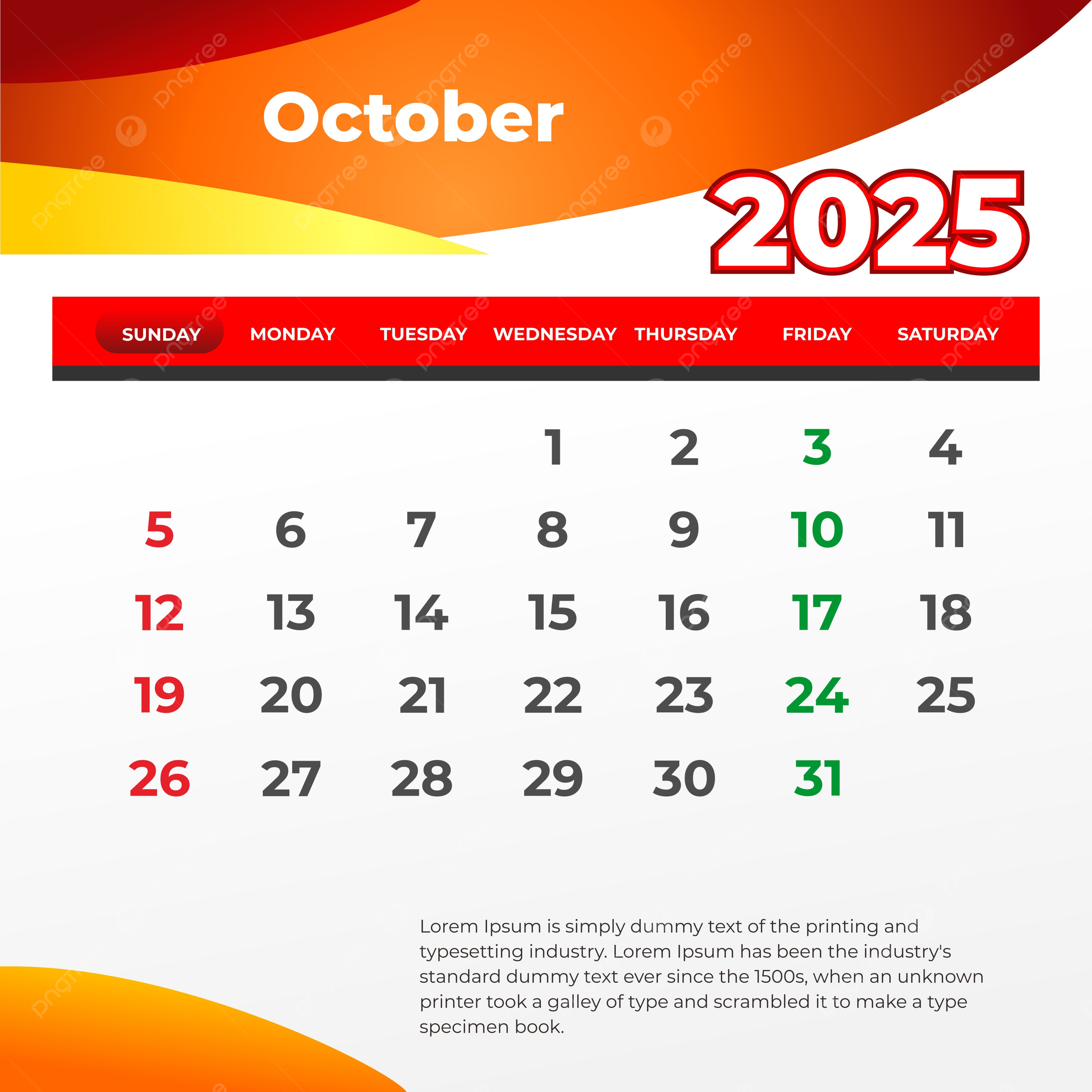 October 2025 Calendar Layout Printable Overlay Organize Task Or Event Vector October 2025 October 2025 Calendar 2025 Calendar PNG And Vector With Transparent Background For Free Download