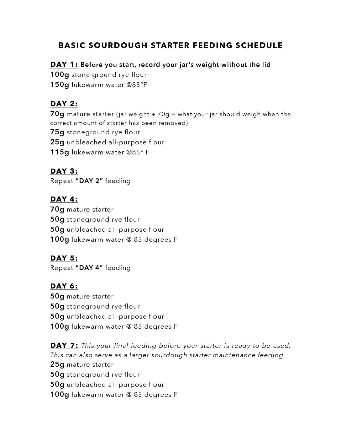 Simply download and print the sourdough starter chart, then fill in the dates and feeding amounts as needed. This visual aid will make the sourdough starter process more manageable and less daunting, even for beginners.